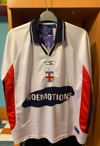 Camiseta de la marca Noemotions con diseño inspirado en la selección de Inglaterra. - Color blanco con detalles en rojo y azul marino. - Cuello tipo polo. - Escudo de Inglaterra y logo de la marca bordados. - Sin estrenar (con etiqueta) - Venta por confusión de regalo