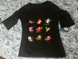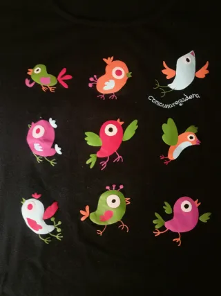 Camiseta negra con pájaros multicolor