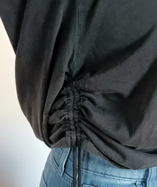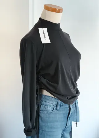 Camiseta de Bimba y Lola, elegante y moderna. Perfecta para cualquier ocasión. - Diseño con cuello alto. Efecto desgastado - Detalle de fruncido lateral con cordón ajustable. - Manga larga.