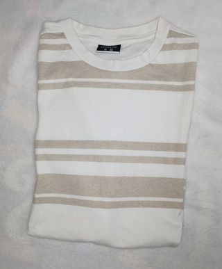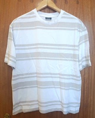 ¡Básico perfecto! Camiseta manga corta Lefties. Rayas clásicas beige arena/blanco. 🍂✨ 100% Algodón, muy fresco y transpirable. ⚠️ Corte RELAXED FIT/BOXY (suelto y cómodo, no ajustado). Medidas: Hombros 50cm | Sisa 57cm | Largo 71cm. ✨ Estado: Muy bueno, sin defectos. 📦 HAGO ENVÍOS. 🛒 ¡Aprovecha el envío! Si te interesan bermudas o pantalones de mi perfil, dímelo y te hago un anuncio conjunto con descuento. ¡Escríbeme! #Lefties #CamisetaRayas #Beige #CleanLook #TallaM #Algodon #RelaxedFit