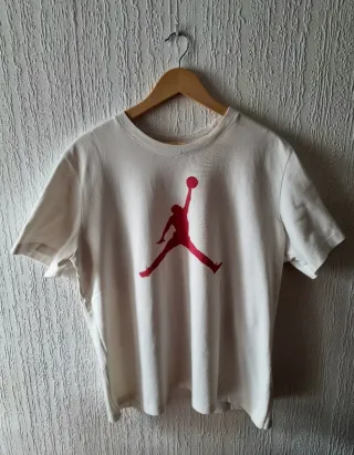 Camiseta de manga corta con el icónico logo de Jordan. - Diseño estampado en rojo. - Cuello redondo. - ESTADO: 9/10 - Usado en contadas ocasiones. - Se vende por falta de uso.