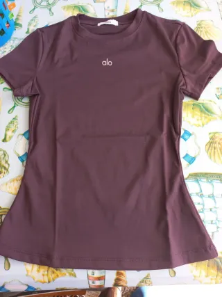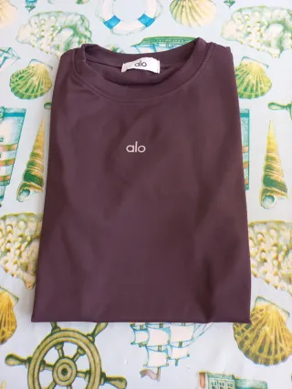 Camiseta deportiva para mujer de la marca Alo. Un básico para tu armario. A estrenar!! Elástica!! - Diseño minimalista con logo. - Cuello redondo.