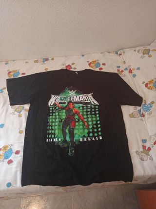 Camiseta de lucha libre con diseño de WrestleMania y Bianca Belair. - Diseño frontal con imagen de Bianca Belair. - Logo de WWE WrestleMania. - Estampado en verde y negro.