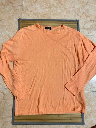 Camiseta de manga larga para chico, en color naranja. De Zara. Perfecta para un look casual. - Cuello redondo. - Tejido ligero.