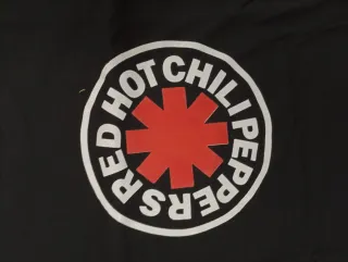 Camiseta estampada con el logo de Red Hot Chili Peppers. - Diseño circular con el nombre de la banda. - Estampado central en rojo y blanco.