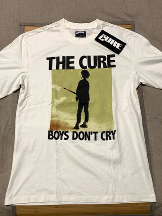 Camiseta blanca con el icónico diseño Boys Don't Cry de The Cure. Ideal para fans de la banda. Nueva con etiqueta. Es talla S de chico. Medidas pecho 49 cm y largo 72 cm