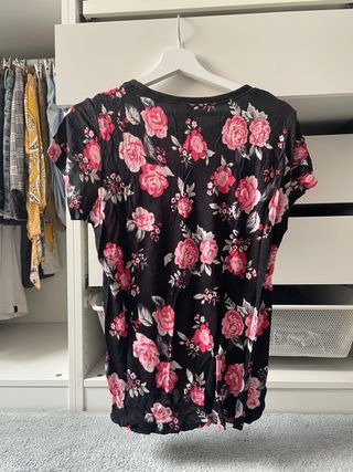 Camiseta H&M floral negra y rosa