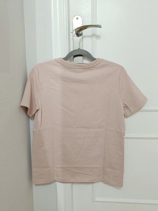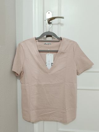 Camiseta básica de color rosa empolvado de la tienda Zara. Tejido de algodón, manga corta y escote en pico. Talla S. Nueva a estrenar: conserva la etiqueta. #summer #woman #casual #basic #Zara