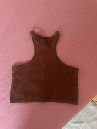 Crop top de tejido acanalado. - Diseño de tirantes. - Cuello redondo alto.