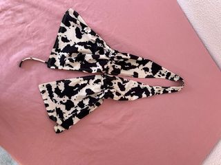 Blusa con un llamativo estampado. - Diseño de escote pronunciado. - Patrón de manchas en blanco y negro.