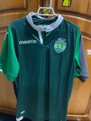 Camiseta del Sporting Club de Portugal. - Diseño en color verde con detalles blancos. - Logo de Macron en el pecho. - Escudo del club en la parte frontal.
