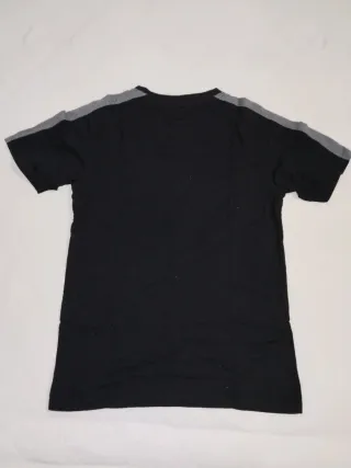 Camiseta de manga corta con un diseño moderno y llamativo. - Parte superior negra y parte inferior azul. - Detalle de logo plateado en la zona azul. - Cuello redondo.
