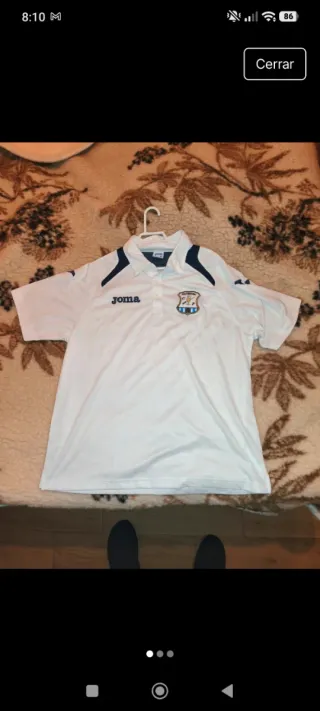 Camiseta deportiva blanca del Jerez Industrial. - Diseño con cuello tipo polo. - Logo de Joma bordado en el pecho. - Escudo del equipo en el pecho.