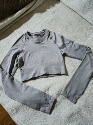 Top deportivo de manga larga en color gris. Ideal para entrenamientos. Nuevo sin uso - Tejido elástico y transpirable. - Diseño ajustado al cuerpo.
