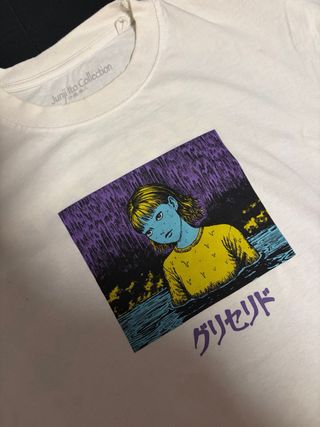 Camiseta blanca con un diseño gráfico inspirado en Junji Ito. - Ilustración frontal. - Manga corta.