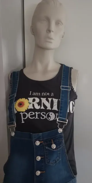 Camiseta de tirantes con un diseño a rayas. Presenta pequeñas aberturas laterales. - Diseño a rayas. - Aberturas laterales. La talla es M, pero da poca talla, a mí parecer es más una S