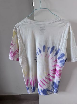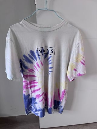 Camiseta de manga corta con un llamativo diseño tie-dye. - Estampado en espiral con tonos morados, rosas y amarillos. - Logo de Vans en el pecho. - 100% algodón - Talla XL, +14( equivale a una M de mujer, da poca talla)