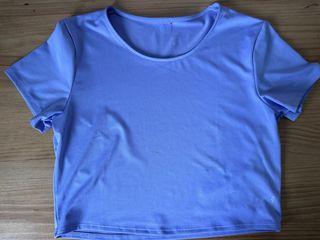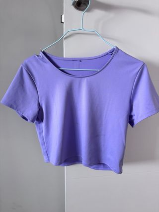 Camiseta deportiva de manga corta, ideal para entrenamientos. - Tejido ligero y transpirable. - Diseño de cuello redondo. - Corte cropped.