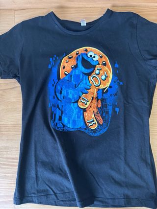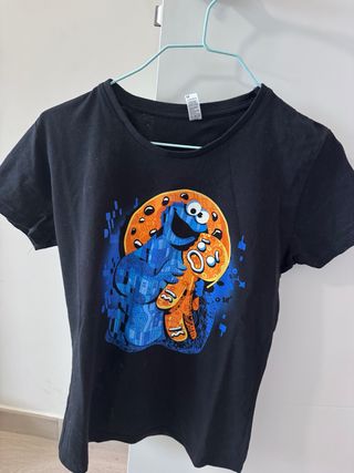 Camiseta negra con un diseño artístico de Cookie Monster. - Estampado multicolor. - Talla M. -No es muy holgada - Algodón 100%