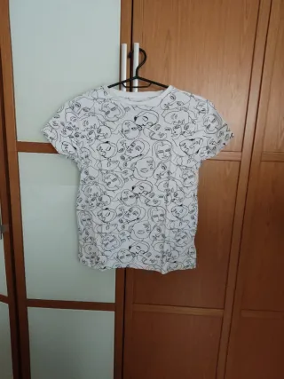 Camiseta de manga corta con un diseño gráfico estampado de imagen icónica . - Apenas usada - Estampado en blanco y negro. - Cuello redondo.