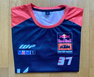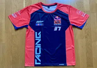 Camiseta oficial de Pedro Acosta del equipo KTM MotoGP. - Diseño inspirado en la competición. - Detalles de patrocinadores. - Número 37 visible. - Talla M y L.