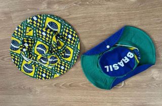 Conjunto de dos camisetas con diseño inspirado en Brasil y dos sombreros. - Camisetas con estampado llamativo. - Sombreros para complementar el look.