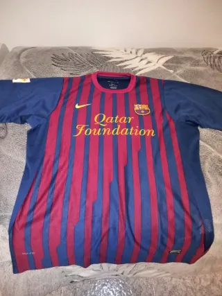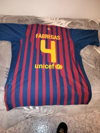 Camiseta de fútbol del FC Barcelona de la temporada 2011/2012, con el dorsal de Cesc Fàbregas. - Diseño a rayas verticales rojas y azules. - Logo de Qatar Foundation en la parte frontal. - Escudo del club en el pecho. - Logo de Nike y tecnología Dri-FIT. La camiseta es original, el problema es que la talla es grande y por eso el precio lo bajo. Ideal para enmarcarla en un cuadro. Precio negociable
