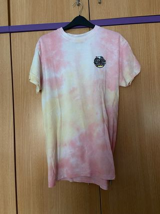Camiseta de manga corta diseño tie-dye en tonos rosas y amarillos. Colaboración de Santa Cruz Skateboards con el parque de atracciones Santa Cruz Beach Boardwalk
