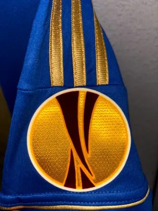 Camiseta de fútbol retro del Chelsea con el dorsal 17 de Hazard. Talla L - Diseño clásico en azul y dorado. - Detalle RIGHT TO PLAY en la parte inferior.