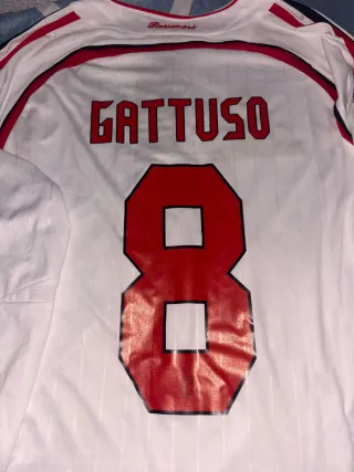 Camiseta de fútbol del AC Milan de la temporada 2006/2007, con el dorsal y nombre de Seedorf. - Diseño clásico en blanco con detalles rojos. - Tejido con textura. - Escudo del club en la parte inferior.