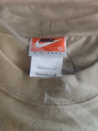 Camiseta de manga larga Nike made in usa es de las gorditas de buena calidad el tallaje es grande una XL equivale a una XXL en España . en europa Nike no trae prendas de está calidad. La bolsa viene sellada por eso no la abro