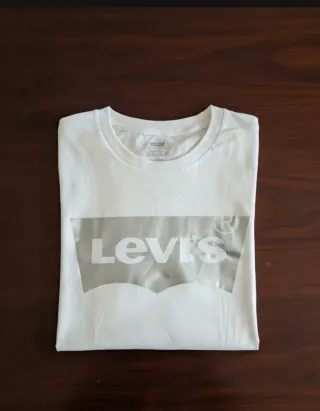 Camiseta blanca de manga corta con el icónico logo de Levi's. - Logo de Levi's en plateado brillante. - Cuello redondo. - Tejido suave y cómodo.