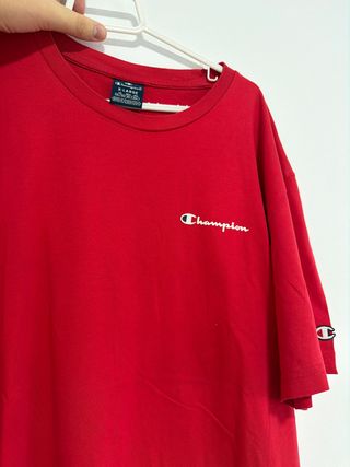 Camiseta de manga corta de la marca Champion en color rojo. Un básico para tu armario. - Logo de Champion bordado en el pecho. - Pequeño logo de Champion en la manga.