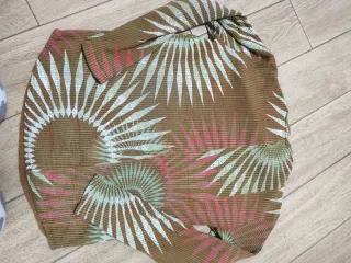 Camiseta con un bonito estampado paisley y detalles de lana. - Cuello en V. - Puños de lana. - Cuello yBajo de lana.