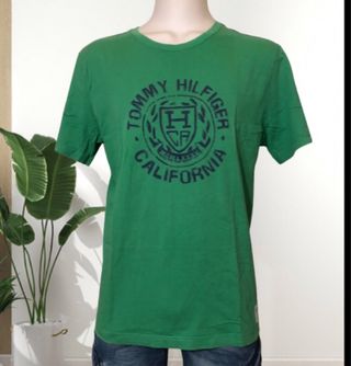 Camiseta de hombre Tommy Hilfiger, color verde, escote redondo y manga corta. Talla XXL. Composicion 100% Algodon. Buen estado tiene alguna manchita (ultima foto) Medidas Hombros 51 cm Sisa 58 cm Cintura 55 cm Largo 72 cm