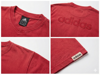 Camiseta Adidas original (modelo Vintage etiqueta negra). Color rojo con efecto lavado. Talla M. Detalle top: Logo Adidas bordado en grande en la espalda (tono sobre tono). Estado: Buen estado vintage. Color uniforme. Material: Algodón de buena calidad. 📦 Envío rápido. Una pieza difícil de encontrar.
