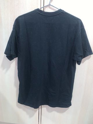Camiseta negra con un diseño gráfico llamativo en el frontal. Es talla M pero oversize. - Estampado de un avión supersónico sobre una ciudad. - Logo de la marca en la parte superior. - Texto Aiiiiiiiiiir en la parte inferior.