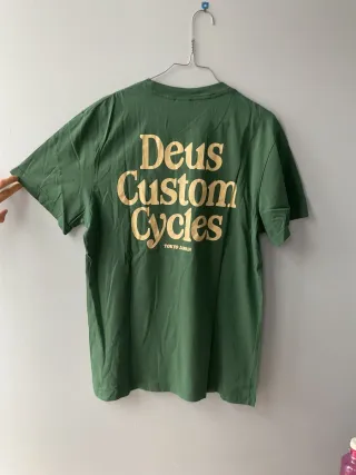 Camiseta de manga corta con un diseño gráfico en el pecho. - Logo Deus y TOKYO JAPAN en dorado. - Cuello redondo.