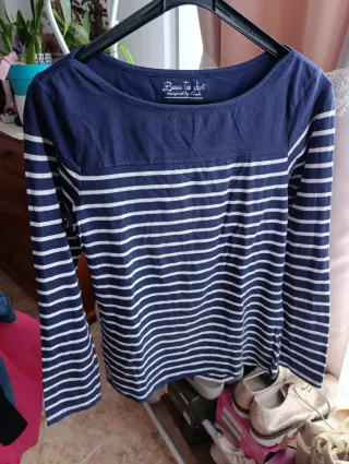 Camiseta de punto con un diseño clásico de rayas marineras. Es una prenda cómoda y versátil. - Manga larga. - Cuello redondo. - Tejido suave al tacto.