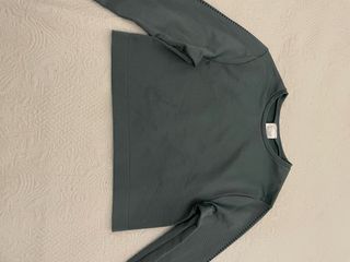 Camiseta crop de manga larga en color verde. Diseño moderno y cómodo. - Tejido acanalado. - Corte cropped. - Detalle de costuras en puños y bajo.