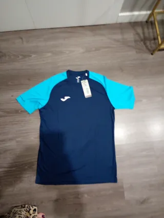 Camiseta deportiva de manga corta con diseño moderno.nueva sin estrenar - Mangas de color turquesa. - Cuerpo principal en azul marino. - Logo de Joma en blanco en el pecho.