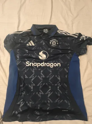 Camiseta de fútbol del Manchester United XXL y selección Inglaterra XL - Diseño con detalles geométricos en azul marino y negro. - Logo de Adidas y escudo del club. - Patrocinador principal en el frontal.