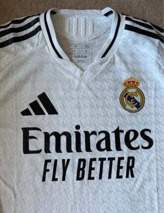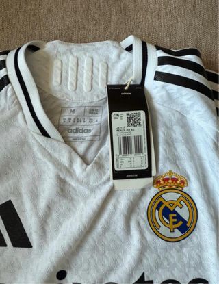 Camiseta adidas Primera Equipación del Real Madrid 24/25 AUTHENTIC, VERSIÓN JUGADOR, NO aficionado. Talla M de hombre. Parche de HP estampado en la manga.