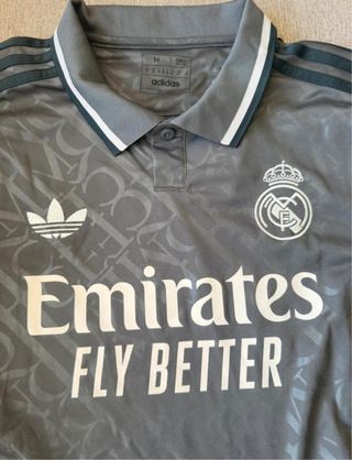 Camiseta Adidas del Real Madrid. Tercera equipación gris 24/25. Talla M, hombre. Logos bordados. Tela Aeroredy Transpirable.