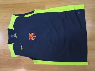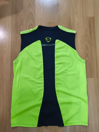 Camiseta de entrenamiento del FC Barcelona de la temporada 2006-2007. - Diseño con detalles en verde neón. - Escudo del club bordado en el pecho. - Logo de Nike en la manga. Camiseta de entrenamiento oficial del FC Barcelona temporada 2006-2007. Original Nike Dri-Fit. Usada pero en buen estado, sin roturas ni manchas. Modelo retro, difícil de encontrar. Talla L