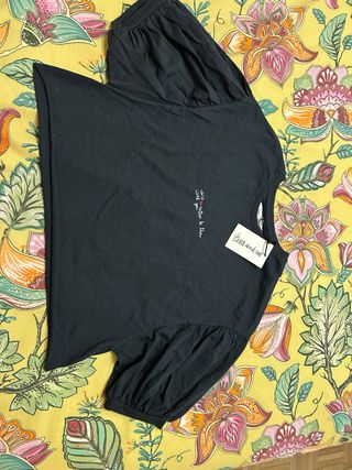 Camiseta de manga abullonada con un diseño sutil. - Tejido suave y cómodo. - Detalle de texto bordado. - Etiqueta de la marca incluida.