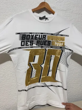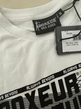 Camiseta de manga larga con un diseño moderno y llamativo. - Estampado frontal con el logo Boxeur des Rues y el número 30 en dorado. - Detalle de líneas gráficas y texto Always Beyond repetido.
