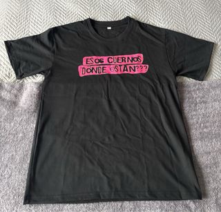 Camiseta conmemorativa de la gira 25 putos años de Dani Martín. - Diseño frontal con texto El Canto del Loco y yo estamos vivos!!!!. - Color principal negro con detalles en rosa y blanco.