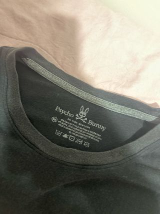 Camiseta negra de Psycho Bunny con un pequeño bolsillo en el pecho. - Logo de Psycho Bunny bordado en rosa en el bolsillo.