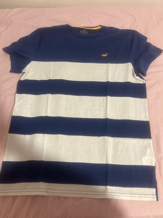 Camiseta Hollister Talla M Rayas Azul y Blanca